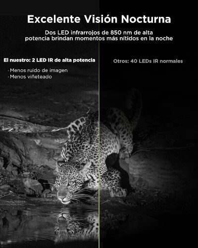 - Alta Resolución de Imagen y Vídeo Ultra HD: Equipada con una lente óptica de primera calidad y un sensor de imagen avanzado, la cámara de fototrampeo CEYOMUR CY95 captura fotos de 46MP y vídeos en 4K a 30fps. Las imágenes son claras y nítidas, y gracias a los 2 LEDs de bajo brillo de 850nm, esta cámara captura momentos excepcionales de la fauna nocturna con detalles impresionantes y claridad.