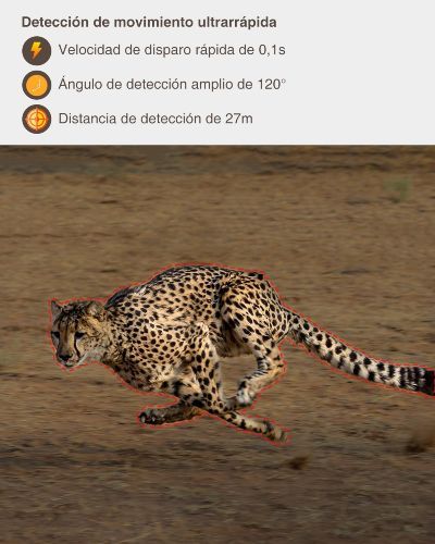 - Respuesta Rápida a la Detección: Con una velocidad de disparo ultrarrápida de 0.1 segundos, la GardePro A5 está siempre lista para capturar instantáneamente cualquier acción. Ideal tanto para vigilancia de fauna como para seguridad del hogar, garantizando que no te pierdas ningún momento importante.