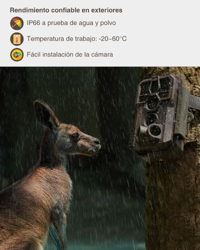 - Durabilidad y Resistencia al Clima: Diseñada para soportar las condiciones más extremas, la GardePro A5 tiene una clasificación de resistencia al agua IP66. Está preparada para cualquier clima, ofreciendo fiabilidad continua sin importar las condiciones externas.