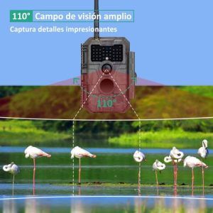 - Campo de Visión Ampliado: La lente gran angular de 110° de la GardePro E6 permite capturar escenas más amplias de la vida silvestre, facilitando un mejor entendimiento de sus movimientos y comportamientos. Esta amplitud de visión cubre más área con menos cámaras, optimizando así los recursos y el tiempo.