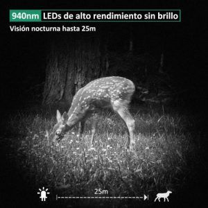 - Visión Nocturna sin Resplandor: Utilizando tecnología de infrarrojos de 940 nm, la GardePro E6 ofrece una visión nocturna efectiva y discreta sin asustar a los animales, gracias a su iluminación infrarroja invisible. La tecnología de iluminación adaptativa evita tanto la sobreexposición como la subexposición, proporcionando una visión nocturna clara y uniforme hasta 25 metros de distancia.